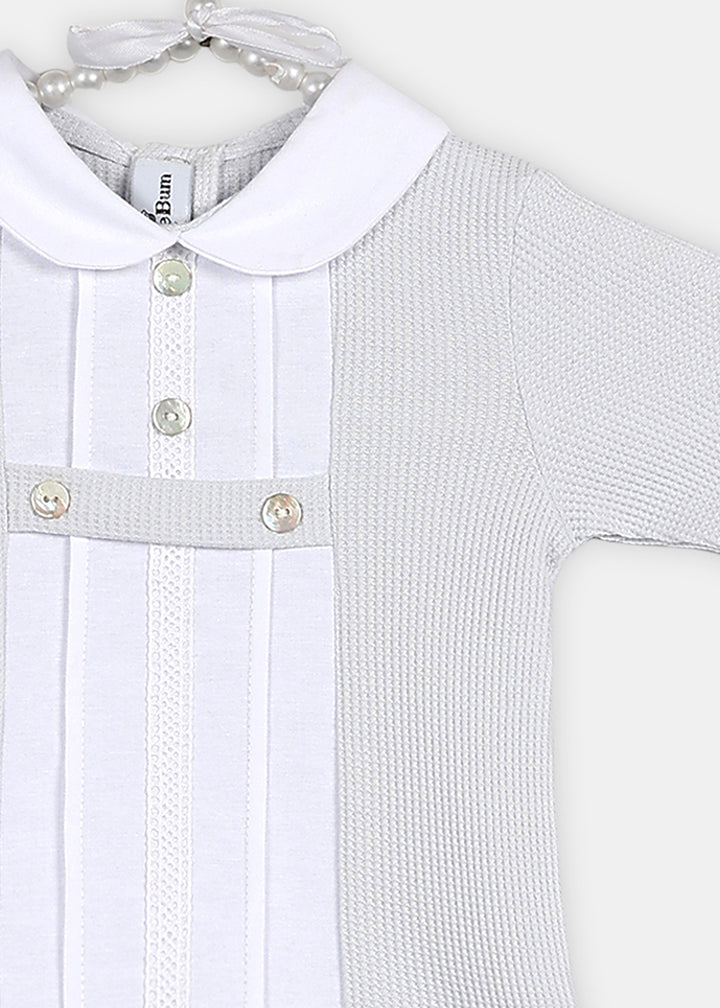 Meet Aron—a two-piece set that pairs lush texture with thoughtful detail. An heirloom-worthy textile in vintage cream tones sets the stage for polished moments, from festive gatherings to family portraits. With its delicate lacework and soft knit base, Aron feels like a keepsake made for everyday magic.