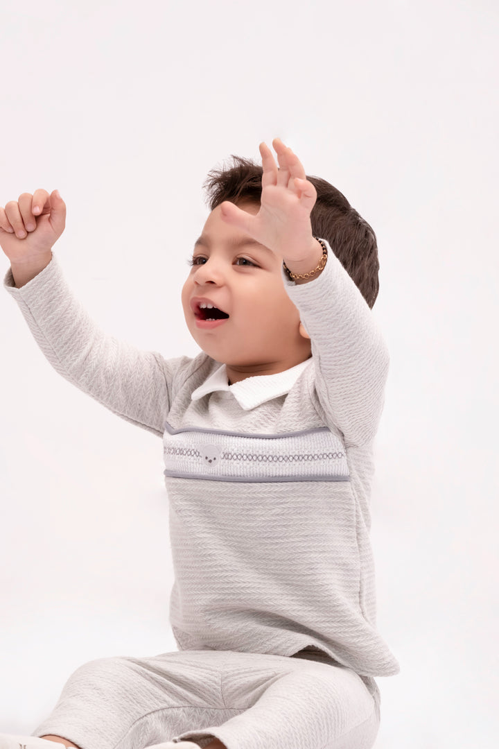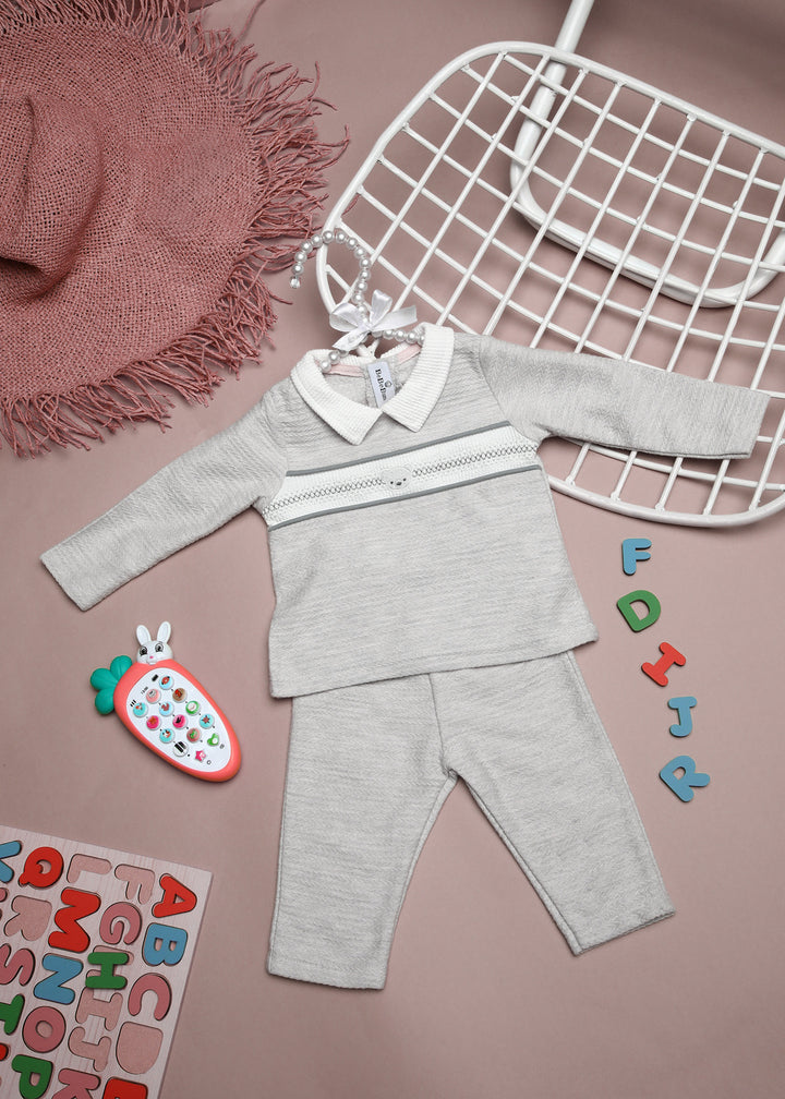 Meet Blake—a two-piece set that blends soft texture with an elevated touch. Mist gray knit offers cozy comfort, while tailored accents create a look that’s both polished and playful. It’s a versatile outfit that adds just the right touch of timeless style to everyday moments.
